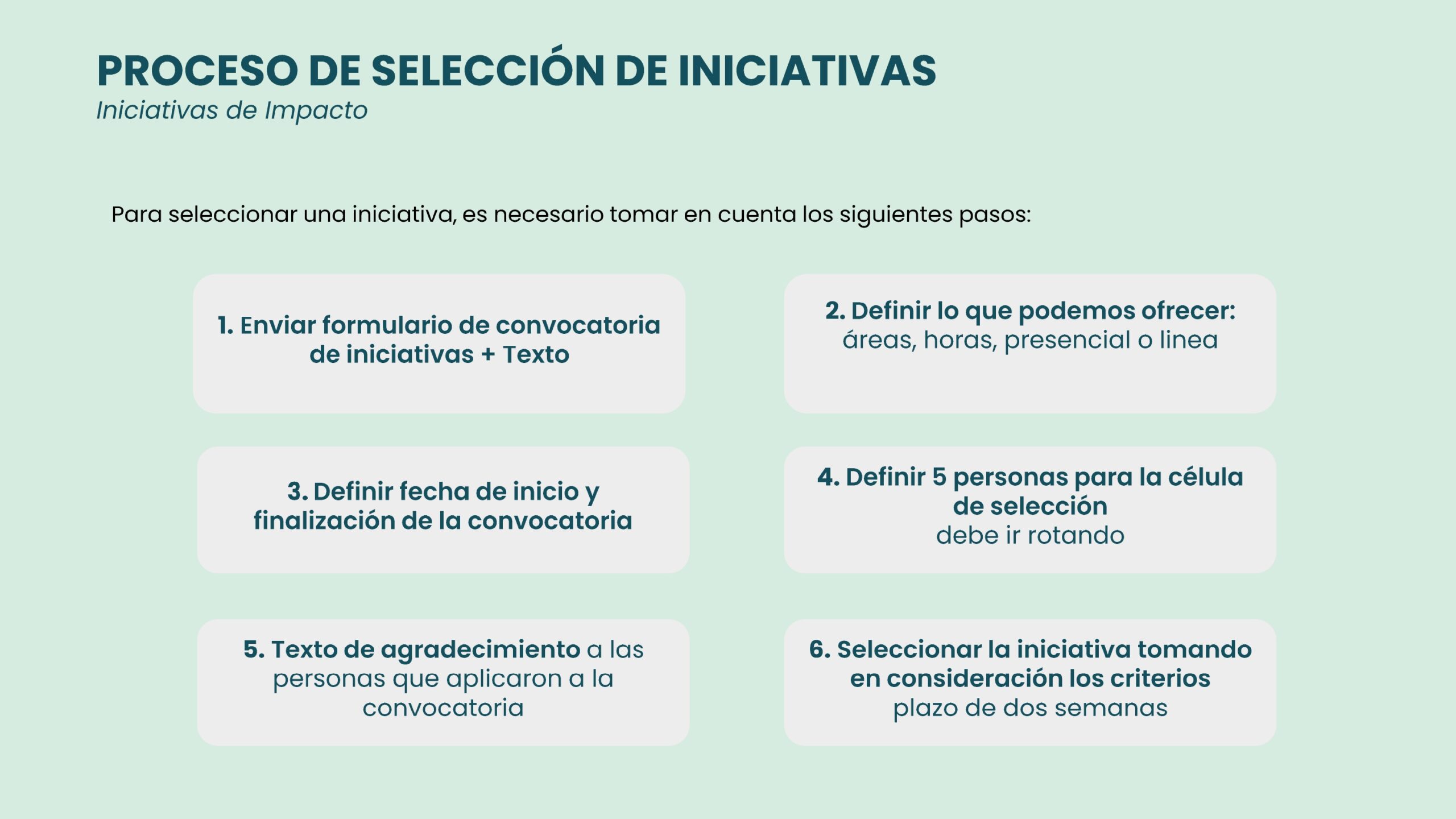 Plazo de dos semanas para la selección de iniciativas una vez que se cierre la convocatoria.